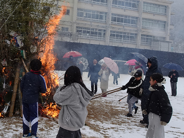 とんどの煙や火の粉には歳神様のお力が備わっているとされ、それにあたることで穢れが祓われ、無病息災や家内安全、五穀豊穣という願いがかなうともいわれています。